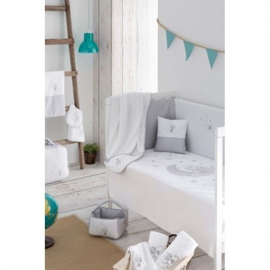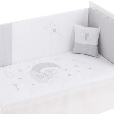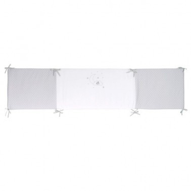 Protector estampado desenfundable adaptable para cunas de 60, 70 y 80 cm de ancho, que se sujeta fácilmente gracias al sistema de cintas. Evita que tu bebé se pueda golpear con los barrotes de la cuna. Con su alegre y moderno diseño será una práctica y bonita forma de proteger el descanso de tu bebé, además de completar el conjunto en su cunita. Admite lavadora a 40º C y secadora a baja temperatura. Lavar colores oscuros por separado.